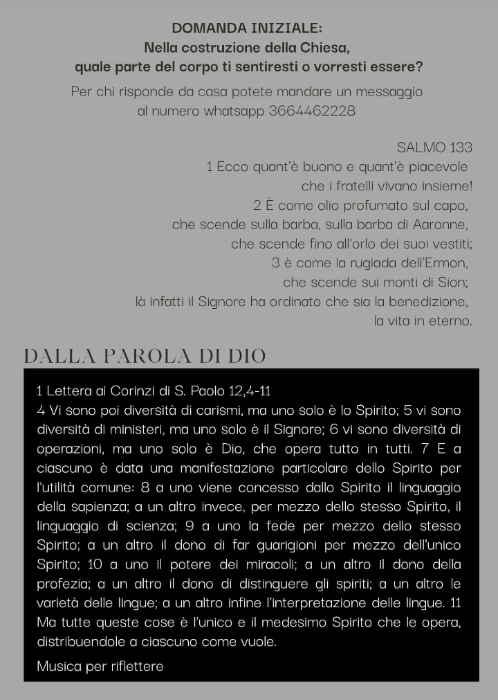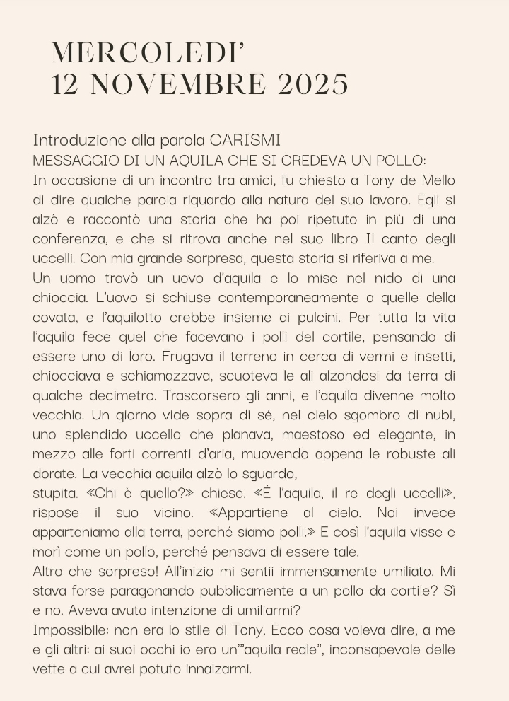 Lettura Comunitaria Vangelo della Domenica-Mercoledì 12 Novembre
