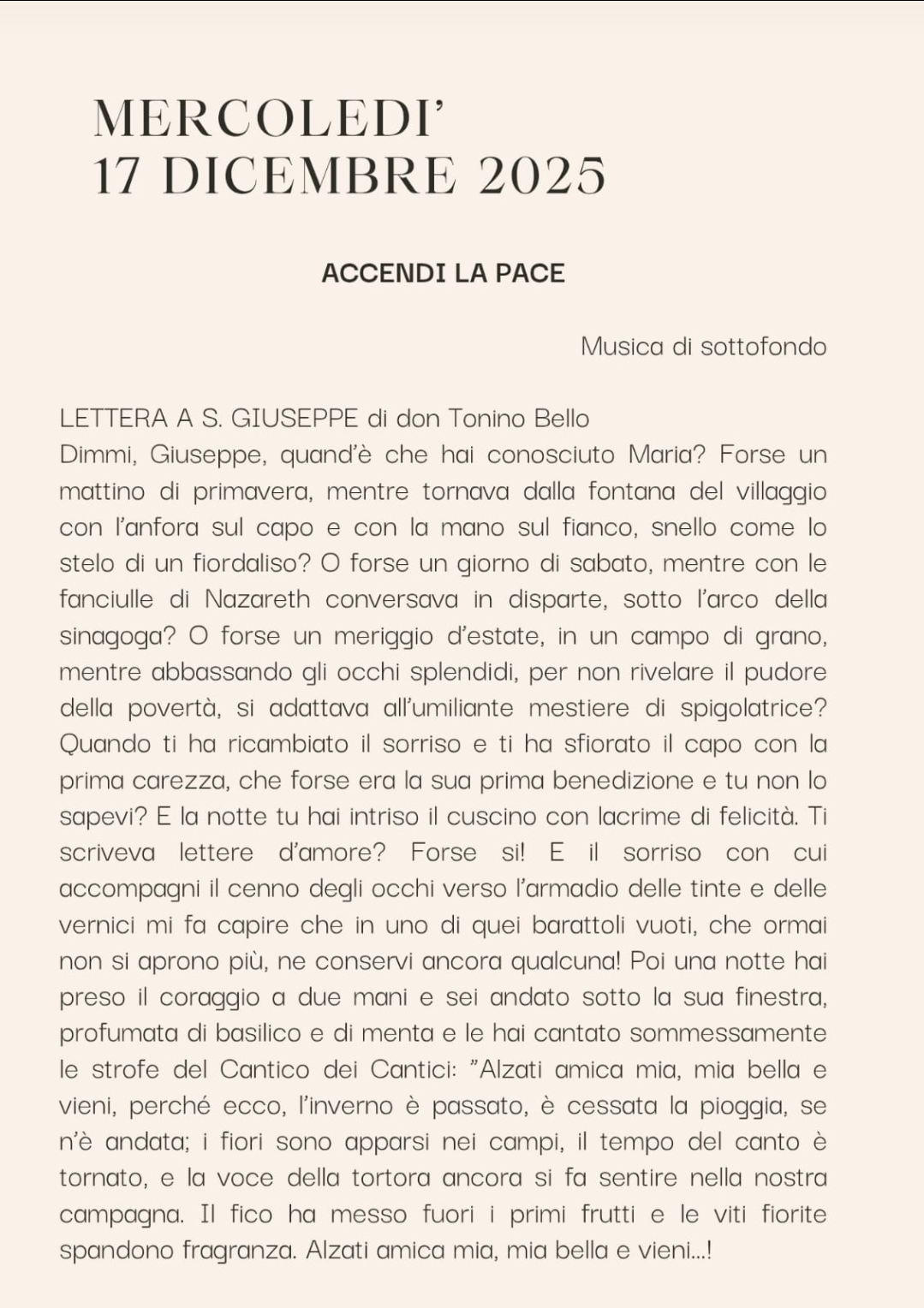 Lettura Comunitaria Vangelo della Domenica-Mercoledì 17 Dicembre